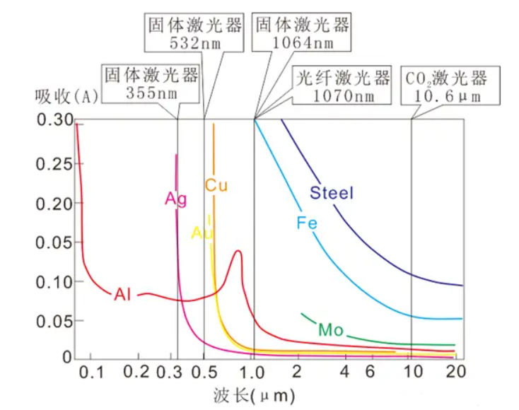 波長不僅決定了激光的“身份”,更關(guān)鍵的是決定了不同材料對它的吸收率。