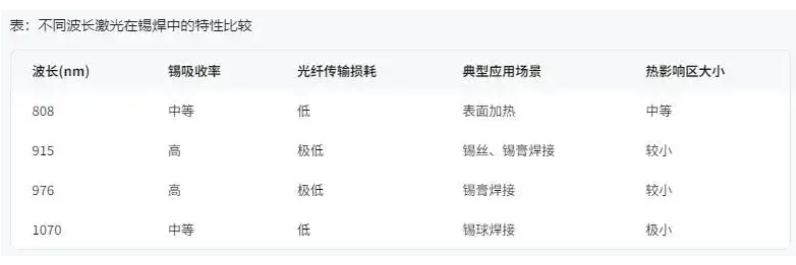 在常規(guī)的激光錫絲焊接和激光錫膏焊接中,我們教常見的激光波長是 915nm、976nm 或 980nm 的近紅外半導(dǎo)體激光器。這主要基于以下三個中心考量: